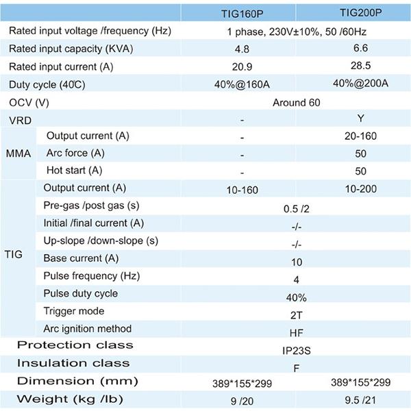 • Aotai TIG-P 160/200