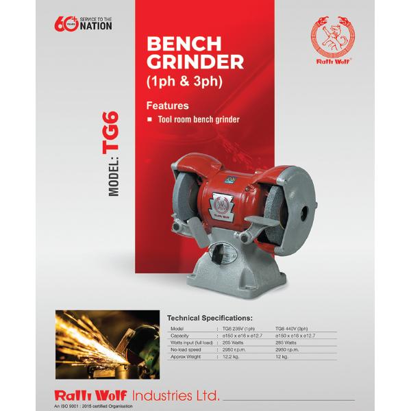 Ralli Wolf TG6|150mm|6inch 265W Bench Grinder(Metal Body)